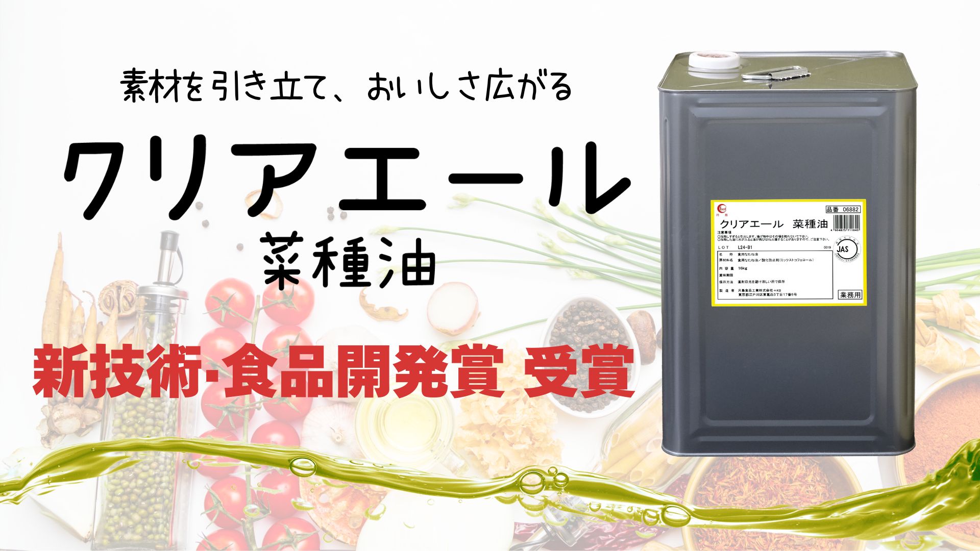 月島食品工業株式会社(東京都江戸川区 代表取締役社長:管野清幸)の「クリアエール菜種油」が、日本食糧新聞社制定、令和6年度「第38回新技術・食品開発賞」を受賞しましたのでお知らせいたします。