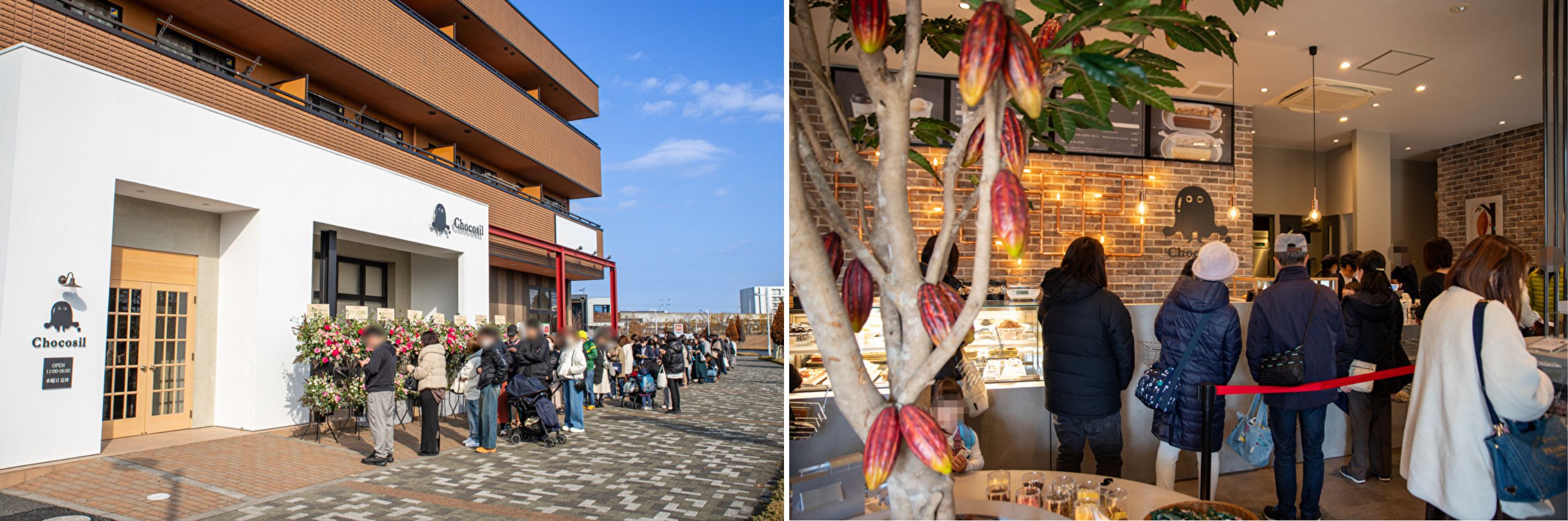 1月23日のグランドオープンは好天にも恵まれ、開店前から店先に長蛇の列ができ、午後になっても行列が絶えないほどの盛況ぶりとなりました。グランドオープン以降もバレンタインシーズンが重なったこともあり平日でも行列が絶えず、一部商品が品薄になるほどの賑わいとなりました。