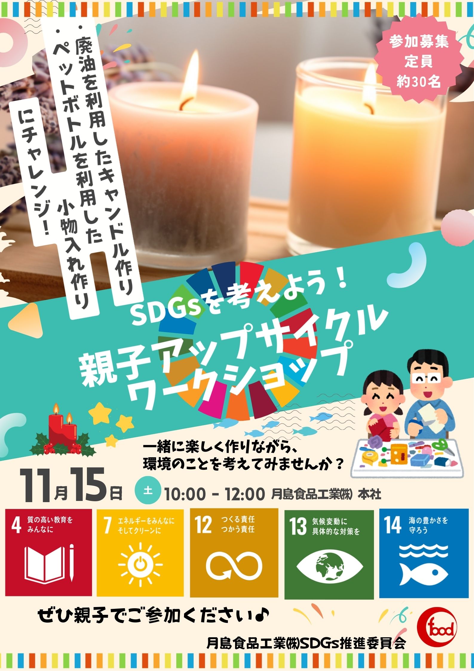 月島食品工業株式会社は、SDGsの取り組みの一環として「アップサイクルワークショップ」を開催しました。全社員に呼び掛け、親子でご参加いただき、身近な素材を捨てずに活かすアップサイクルを楽しく学ぶ機会となりました。