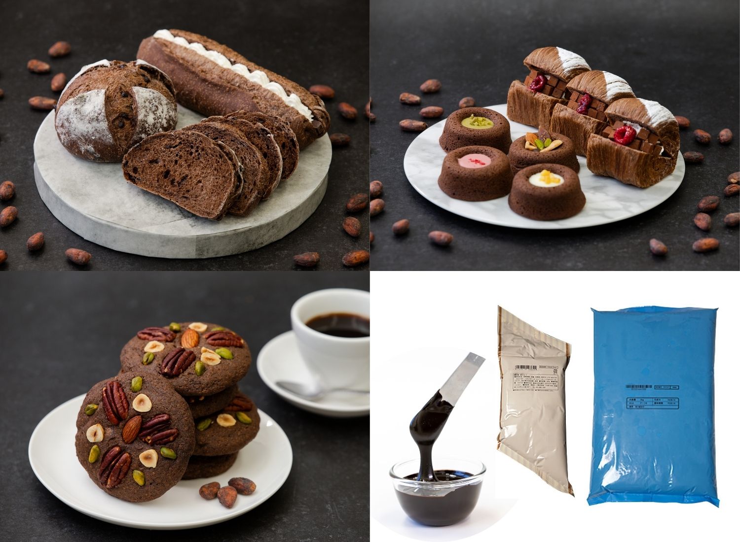 パン・菓子用の練り込みチョコレートです。 パンや菓子にチョコレートの豊かな薫りと深みのある味わいをもたらします。 ココアをふるう手間も、チョコレートを溶かす必要もない、生地に馴染みやすいペースト状で作業時間の短縮につながります。 プラントベースに対応し、RSPO MB認証を取得しています。