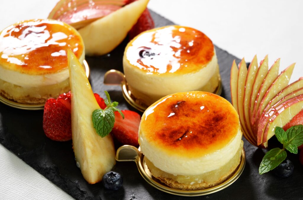 カラメリゼのほろ苦さと、ごろっと果肉感のあるりんごゼリーのみずみずしさが、コクのあるシブーストマッチした、秋にぴったりのプティガトーです。
