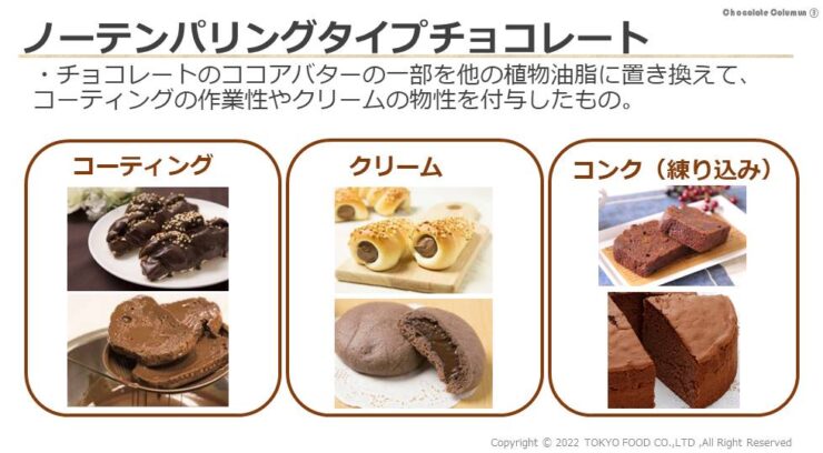 東京フードでは、さまざまな種類のノーテンパリングチョコレートを取り揃えています。