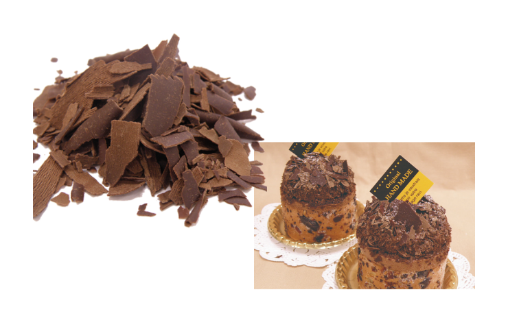 板チョコを「カンナ」のような機械で薄く削って、薄片にしたシェイブチョコレートはスイーツのトッピングに最適です。