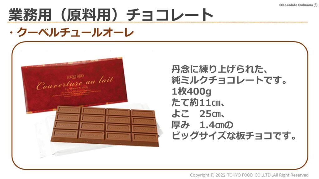 クーベルチュールオーレの製品詳細はこちら※東京フードのホームページに移動します