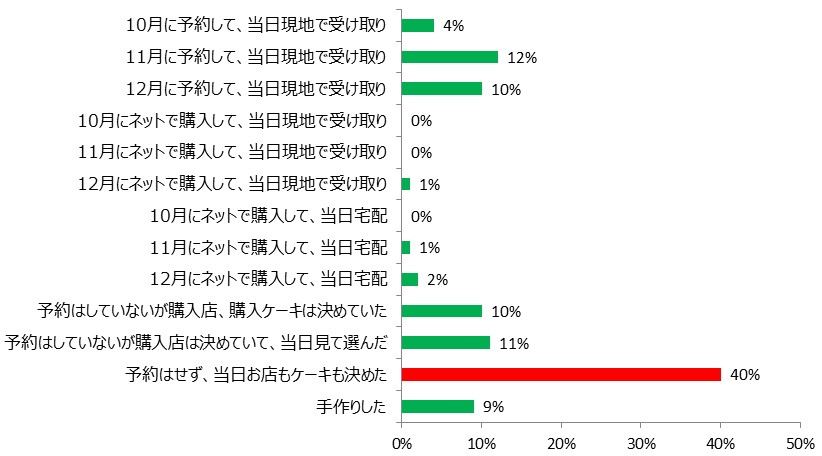 40%の方が『予約はせず、当日お店もケーキも決めた』と回答して1番。