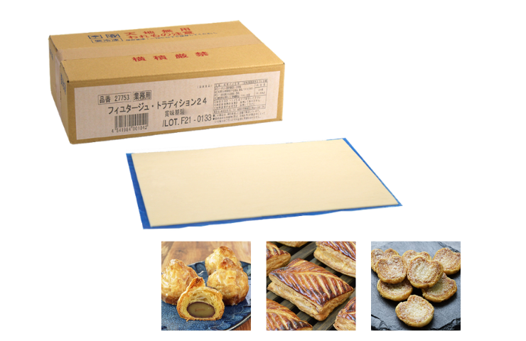 はらはらと繊細な食感と豊かな風味が特徴で、ガレット・デ・ロワなどのスペシャリテに用いられることも多いプレミアム感のある製法です。