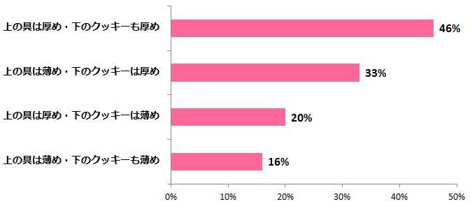 上の具も下のクッキーも「サクサク」食感が良い人がどちらも46%と最も多い結果となりました。