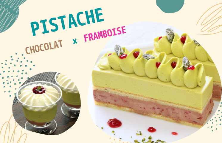 ・ピスタチオと組み合わせたい素材人気ツートップのチョコレートとフランボワーズを使用