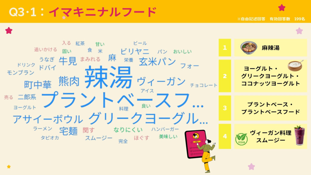 今、食べてみたいキニナル食品“イマキニナルフード”部門1位は、Q1のマイブーム・マイヒット2025「商品」で4位、Q2のマイブームフード2025「料理」で3位にランクインした『麻辣湯』でした。