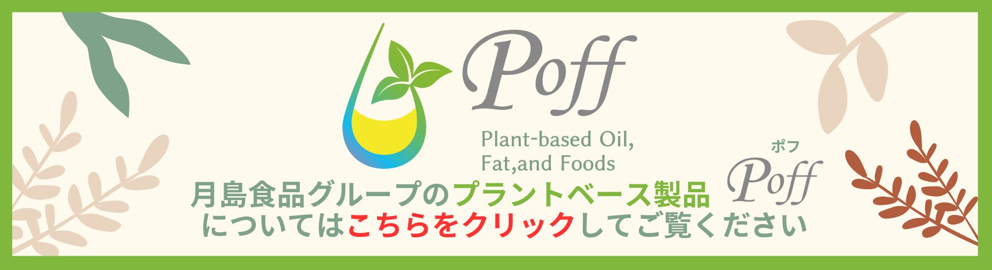 月島食品グループは、植物由来の力で作り上げた人と地球にやさしいプラントベース製品を『Poff(ポフ)』ブランドとして多数ラインアップしています。