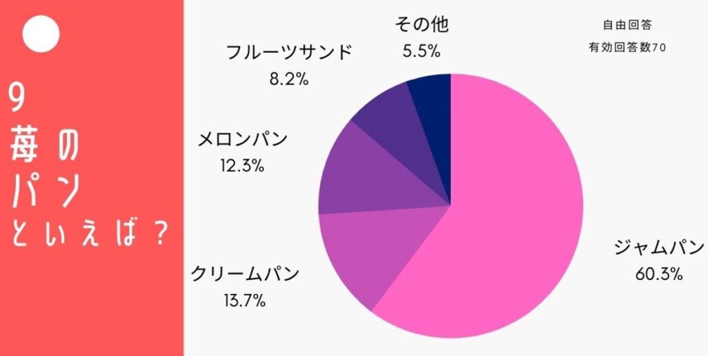 苺の’パン’といえば、何を思い浮かべるか聞きました(自由記述回答)。