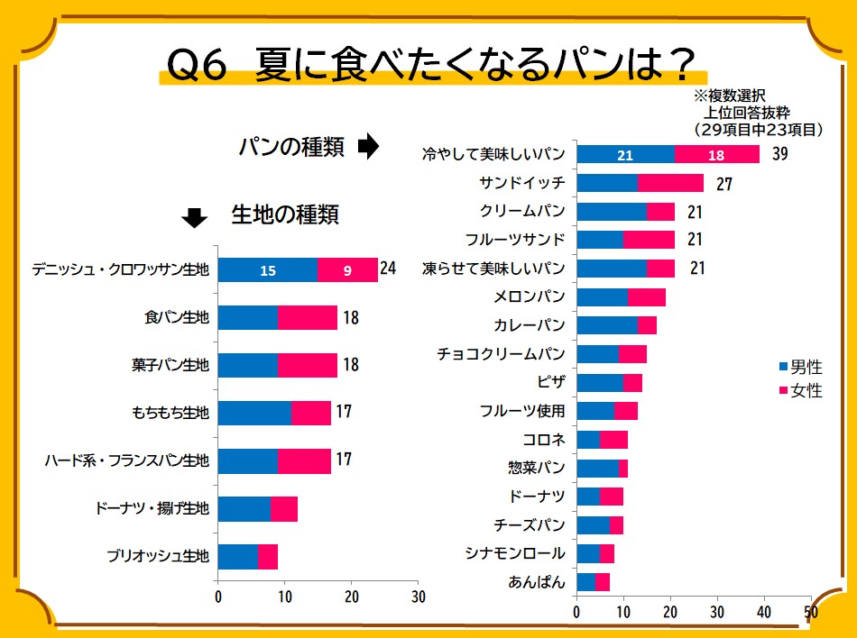 パンの種類・アイテムに関しては、暑い夏ということで『冷やして美味しいパン』が1番になりました。