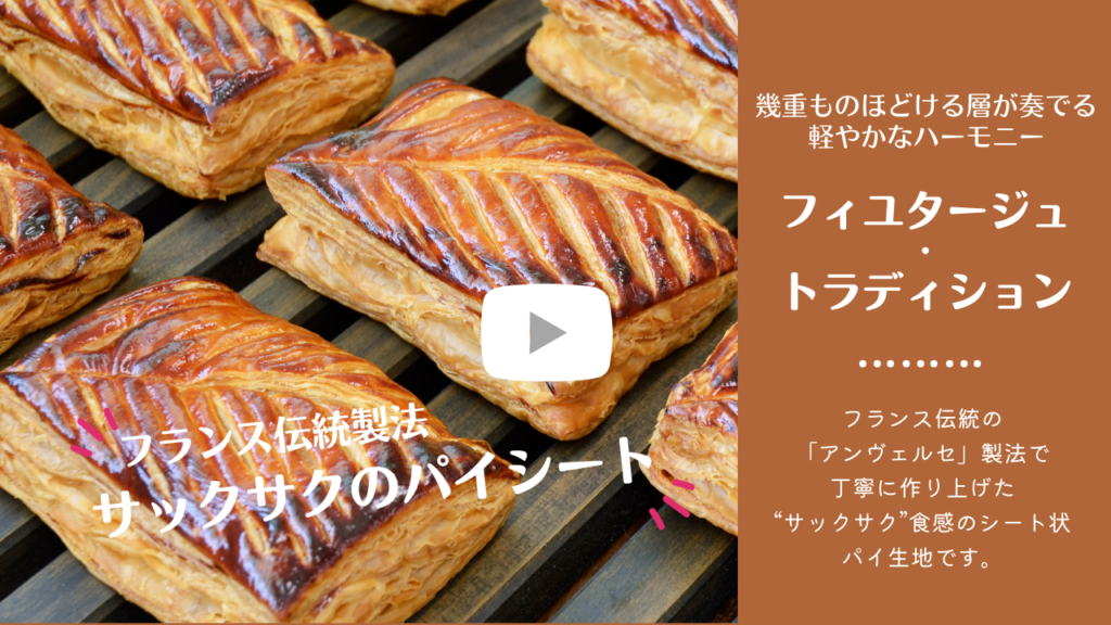 油脂で生地を包み込むフランス伝統の「アンヴェルセ」製法で丁寧に作り上げたシート状の冷凍パイ生地です。