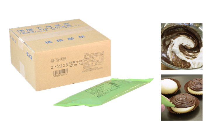 たっぷりのチョコレートとふんわりメレンゲを優しく合わせた、食感がユニークなチョコレート風味の冷凍絞り生地です。生地の絞り方や厚みでお好みの食感に焼き上げることが出来ます。