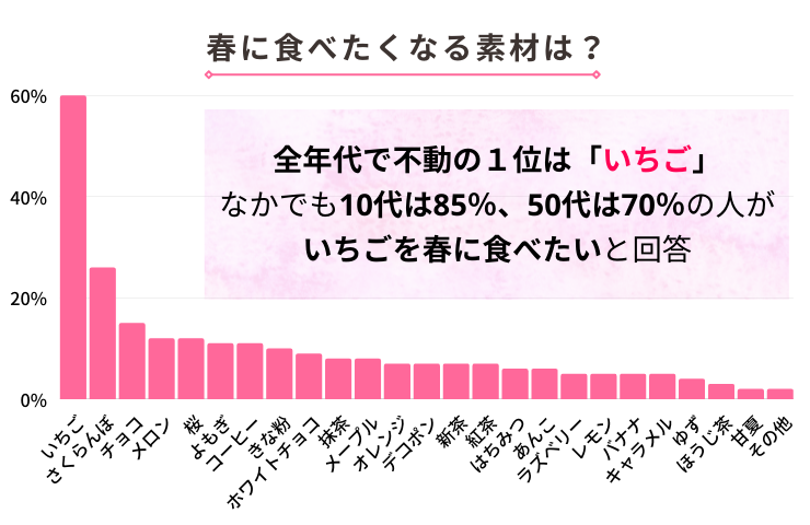 全体の60%が春には苺を食べたい!と回答しました。全世代からの圧倒的な支持を受けての堂々の1位です。さらに、好きな苺の品種についても質問しました。