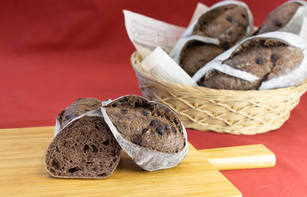 チョコレートらしい色合いと香り、混ぜ込んだチョコチップがバレンタインの棚を盛り上げます。