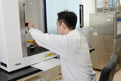 開発テーマは研究所発信のものもあれば、お客様からの要望を実現するためのものもあります。新しい油脂製品が開発できると、製品を使ったパンやビスケットのサンプルを自分で焼いて、営業とともにお客様にプレゼンしに行くことも度々あります。やり取りの中で新しく知見やニーズが得られることもあり、よりお客様の役に立つような製品作りに活かしていくことができます。 -