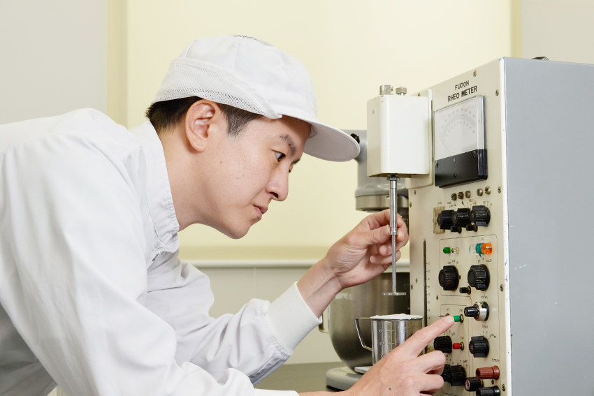 現在は、油脂の精製・加工技術の研究と油脂製品の応用開発等を行っています。はじめは当社のもう一つの基礎技術である発酵技術の研究をして、入社4年目から現在の担当になりました。