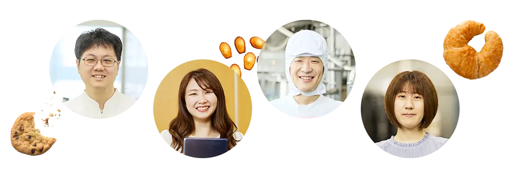 お客様のニーズに合わせた製品を開発する“現場力”が強みのチームです。パンやお菓子、調理食品など多岐にわたる用途に向けて原料の選定や配合設計を行い、さらには何十トン規模でも品質がぶれないことを目指し、生産部と連携して製造テストを行います。市場動向とお客様の声を素早く反映し、味・食感・作業性・コストを高い水準で両立させたモノづくりを担います。
