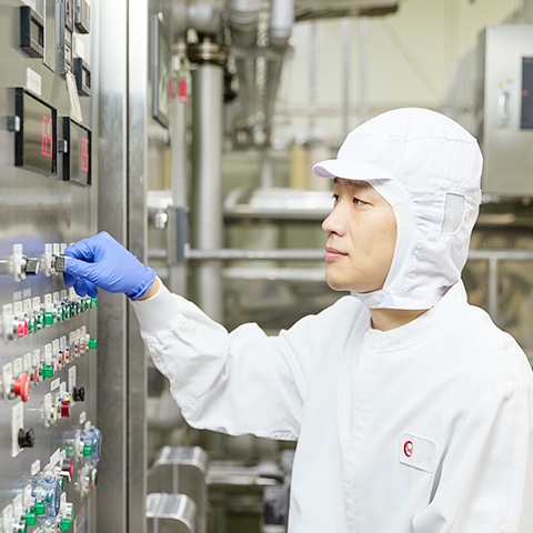おいしさ、健康、利便性、保存性など、お客様が製品に求める価値はさまざまです。しかし、どのような製品であっても、「安全・安心」だけは決して揺らがない価値です。年間600種類以上の製品を食品業界に送り出す私たちにとって、それはモノづくりの根幹をなすものです。安定した品質を保ち、生産のムダをなくすために、生産本部の各部署が連携を密に取り、一丸となって課題解決に取り組んでいます。